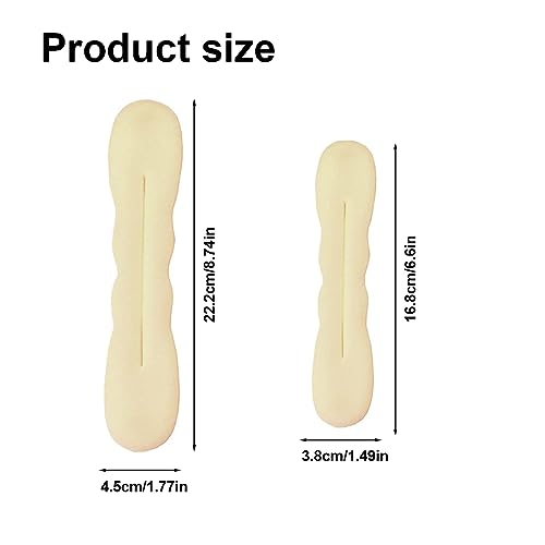 QUALITÀ PREMIUM - Ogni confezione contiene 4 creatori di chignon: 2 piccoli, 2 grandi e 3 lacci per capelli. Realizzato in schiuma ad alta densità, questo strumento per chignon perfetti è forte, flessibile e durevole per sostenere qualsiasi acconciatura a chignon. Ideale per capelli biondi chiari e come regalo fai da te per lei!