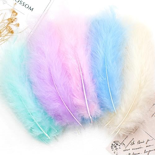 [Lista di imballaggio]: 100 pezzi di piume colorate, piume naturali, colori misti, colori vivaci. La metà superiore delle piume è ordinata e la metà inferiore è soffice, perfetta per una varietà di progetti artigianali come acchiappasogni, fiori di piume, decorazioni natalizie, accessori per costumi e decorazioni per cappelli.