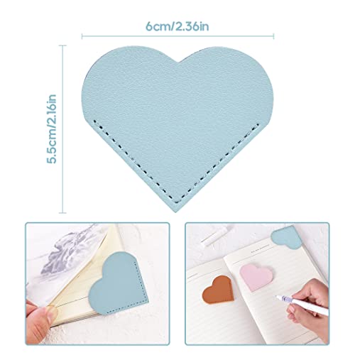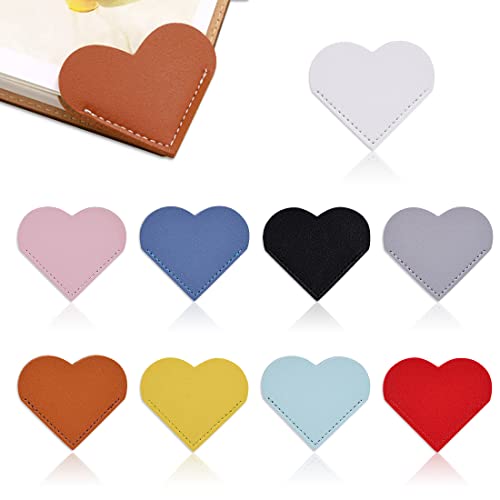 Materiale fatto a mano: questo segnalibro a forma di cuore è realizzato in pelle PU, il materiale del segnalibro in pelle per gli angoli delle pagine è morbido e non danneggia il libro. I fermapagina sono resistenti all'acqua e durevoli, sono finemente cuciti a mano per un tocco confortevole e non si allentano né si usurano facilmente, proteggendo gli angoli del libro per un uso prolungato.