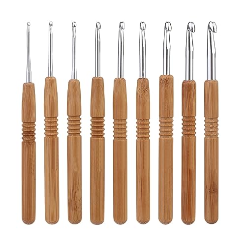 XPEX Set Di 9 Uncinetti Ergonomici Per Uncinetto Set,Ganci a Crochet,Manico In Legno Per Uncinetto,Ferri Da Maglia Extra Leggeri Per Principianti e Filati All'Uncinetto
