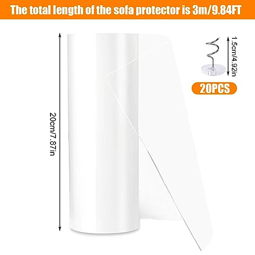 XPJBKC Protezione Divano Graffi Gatto, 20CM*3M Pellicola Antigraffio Gatto con 20 Punte a Spirale e 1 Raschietto, Nastro Antigraffio Autoadesivo in PVC Trasparente per Gatti