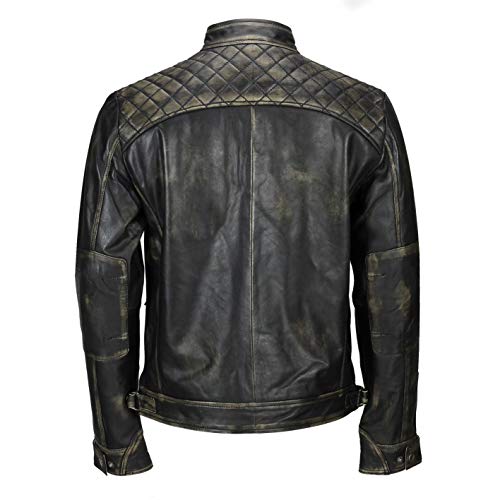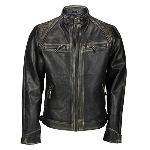 Xposed - Giacca da Uomo con Cerniera, in Vera Pelle Morbida, Stile Motociclista, Vintage, alla Moda, Casual, Colore: Nero Nero-Beige XXXL