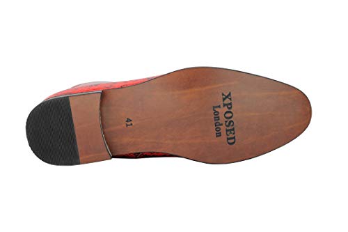 Xposed Uomo in Pelle Verniciata Faux Lucida Pelle di Serpente Stampa Stivaletti Zip sui Pattini Chelsea Dealer [A2076H-RED-42]