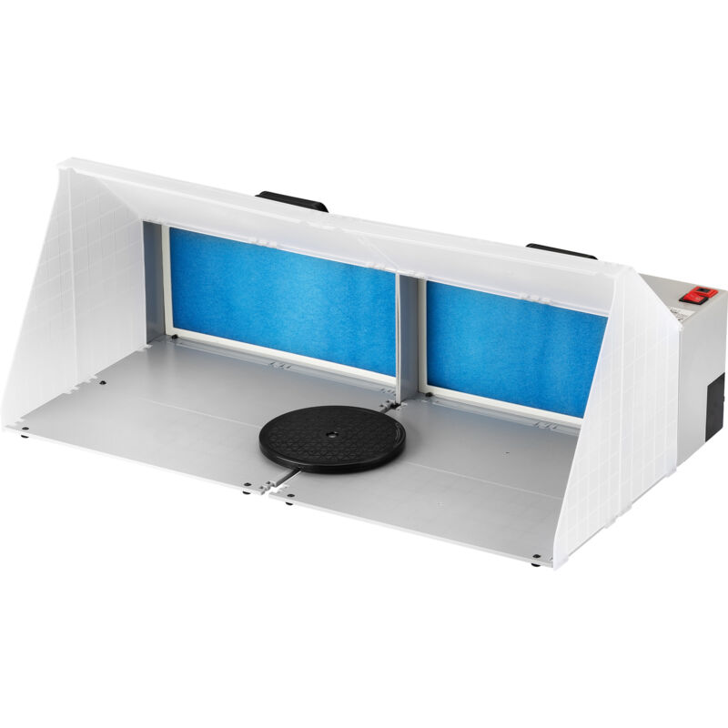 Sistema di aspirazione per aerografo Potenza di aspirazione: 6 m³/min Silenzioso, con soli 52 dB (A) Sicuro grazie alla tensione d'ingresso di 12 V DC Veloce da montare e smontare Il nostro sistema doppio di aspirazione è utile per aerografare. ostacola la diffusione della vernice spruzzata durante l'aerografia. L'aspiratore per la vernice nebulizzata può essere utilizzato anche per estrarre i fumi di saldatura durante lavorazioni tiffany, lavori di fusione con stagno/piombo, lavori con sostanze adesive e fumi di solventi. Sul retro dell'unità si trova una potente ma silenziosa ventola a 230 V che assicura una pressione negativa ottimale nella cabina di lavoro. Questo permette un'aspirazione uniforme su tutta la superficie filtrante. Il livello di rumore è solo 52 dB. Le parti dell'alloggiamento, che possono essere aperte e chiuse rapidamente, assicurano un controllo ottimale dell'aria e permettono al contempo una buona visibilità degli oggetti da lavorare. L'intera struttura è