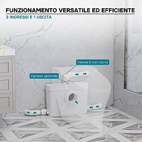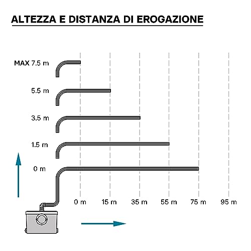 Altezza di pompaggio fino a 7 m in verticale o a 70 m in orizzontale