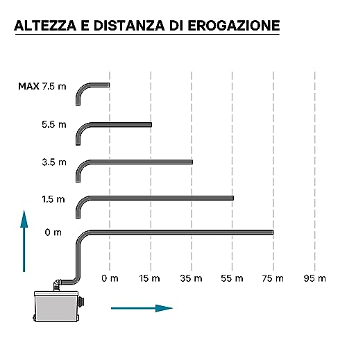 Altezza di pompaggio fino a 7 m in verticale o a 70 m in orizzontale