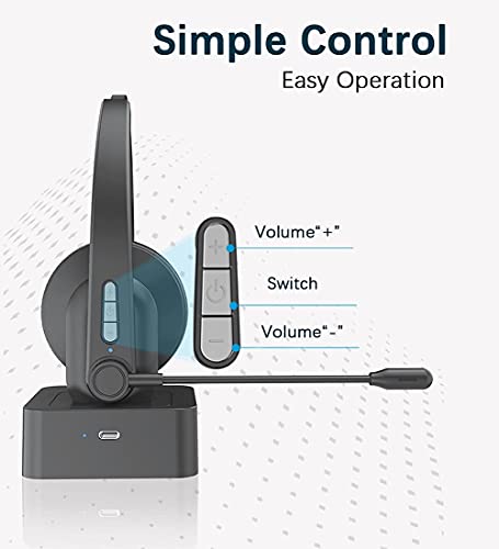 XPSH, Cuffie Bluetooth senza Fili con Microfono con Antirumore per PC Computer Cuffiette Wireless On Ear per Call Center Skype Chat Conference Call Videoconferenza Ufficio
