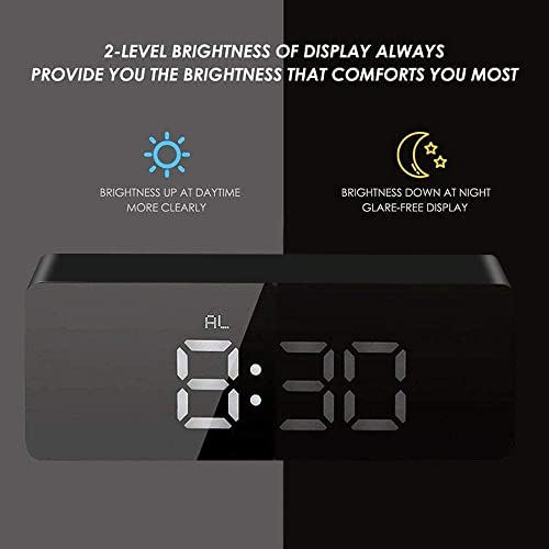 XPSH Sveglia a specchio, sveglia digitale con display a LED di data/temperatura, luce notturna, luminosità regolabile snooze per viaggio/camera da letto/ufficio, cucina