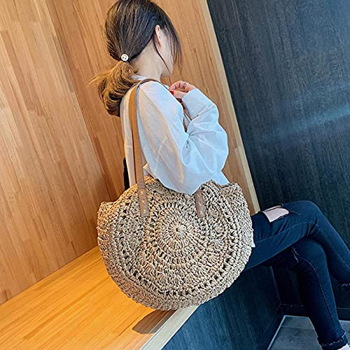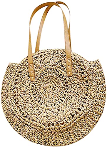 Xqkj Borsa a tracolla da donna, rotonda, in rattan intrecciato, facile da trasportare, borsa da spiaggia, borsa da spiaggia rotonda estiva, Marrone (marrone), Small