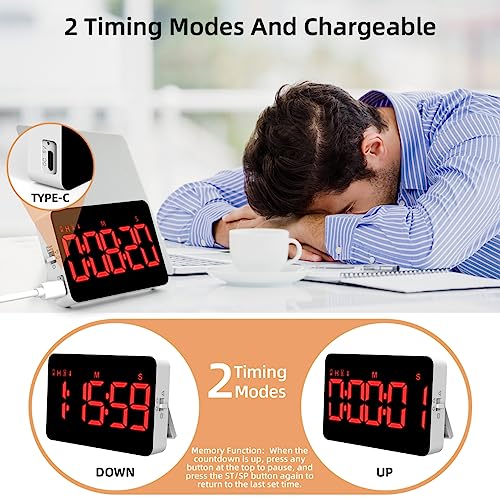 XREXS Timer da Cucina Ricaricabile, Cronometro o Conto alla Rovescia Timer Digitale, Display a LED, Luminosità e Volume Regolabili, Timer Magnetico per Cucina/Riunione/Classe