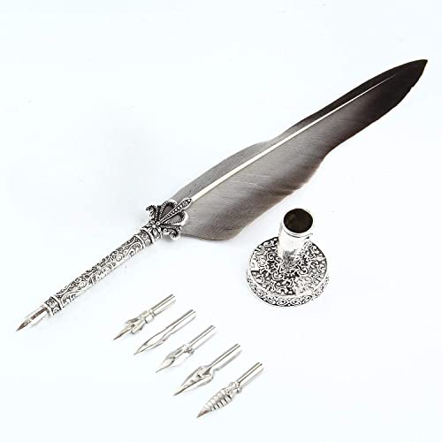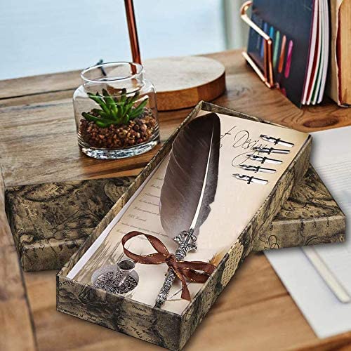 Xrten 1 Penna Piuma,Penna Calligrafica Piuma con 5 Pezzi Pennini Penna Stilografica