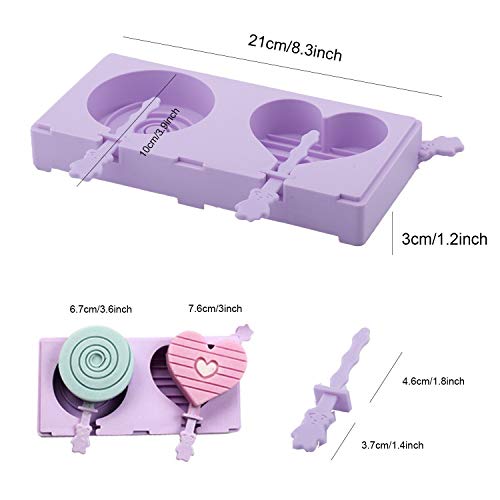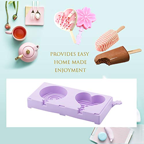 Xrten Popsicle Molds,Bambini Stampi Ghiaccioli Porpora Cerchia Popsicle Maker e Cuore con Popsicle Stick