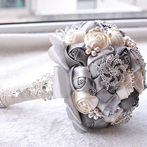 Xshelley fatta a mano con cristalli e strass spilla bouquet Hold Flowers wedding bouquet da sposa spilla, azienda bouquet da sposa Grey