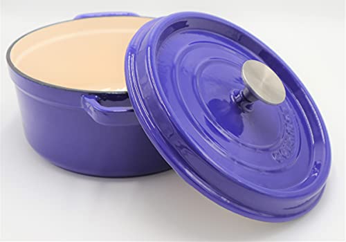 XSQUO Useful Tech Cocotte - Pentola in ghisa rotonda con rivestimento ceramico vetrificato, con coperchio Gourmet Tools (blu, 24 cm) (OGT-2R24A)