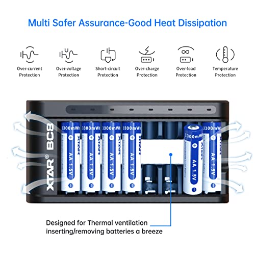 XTAR BC8 Caricabatteria 1.5v batterie ricaricabili Caricabatterie Tipo C per batterie ricaricabili 1.5V Li-ion e 1.2V Ni-MH AA/AAA (caricabatterie BC8)