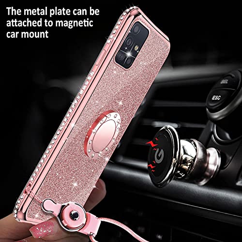 XTCASE Cover Glitter con Cordino per Samsung Galaxy A51 4G, Brillantini Bling Custodia con Supporto Anello a 360° Ultra Sottile Antiurto Morbid TPU Protettiva Case, Rosa