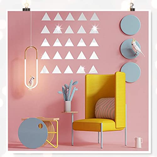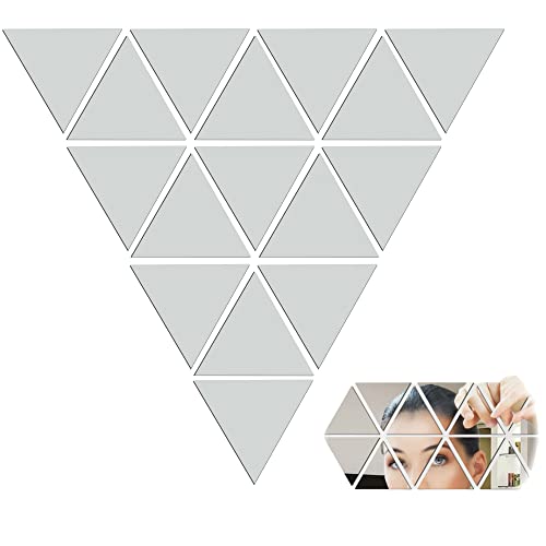 Xtemtoamz Specchio Autoadesivo Triangolo Piastrelle Decorazione - Flessibile Acrilico Diy Per Scuola Cucina Bagno Soggiorno Ufficio Murale Decorazione, 8,5 x 8,5 cm, 20 Pezzi, Argento