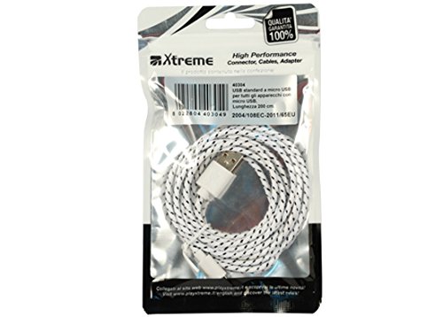 Xtreme 40304 Cavo USB Standard a Micro USB per Apparecchi Dotati di Porta Micro USB, Rivestimento in Tessuto, Lunghezza 2.0 mt