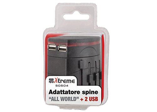 Xtreme 50504 Adattatore Internazionale da UK/USA/Asia/Australia/Medio Oriente/a Spine Internazionali Dotato di Adattatore USB, Max 1500 Watt