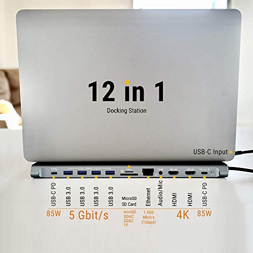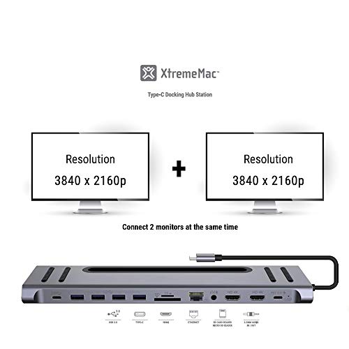 XtremeMac Premium Docking Station Adattatore 12-in-1 USB C, stazione deTipo C per MacBook e Laptop: Ethernet, 4x USB 3.0, 2x USB-C PD, 2x 4K HDMI, Micro Audio, SD / TF Card Reader