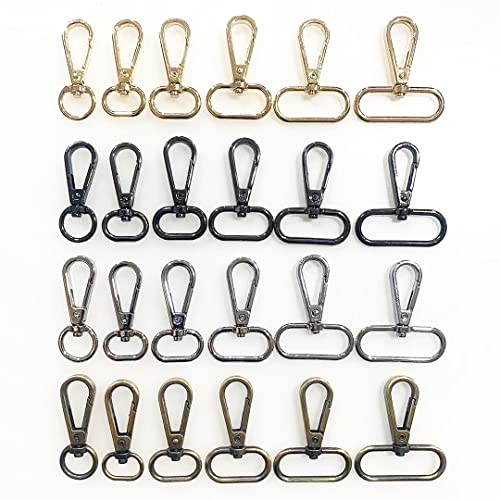 XTUDOU 24 Pezzi Moschettoni per Borse, Metallo Moschettone Girevole Anello Rotante a 360° con Anello a D per Gioielli, Borse, Lavori Di Bricolage, Porta Chiavi (4 Colori 6 Misure)