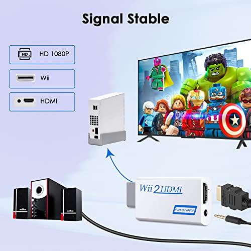 XTVTX Adattatore wii HDMI,Convertitore da Wii a HDMI,Adattatore Wii2HDMI con Cavo HDMI Wii Connettore Wii a HDMI 1080p 720P/1080P Uscita video e audio da 3,5 mm per Nintendo wii,TV, Proiettore