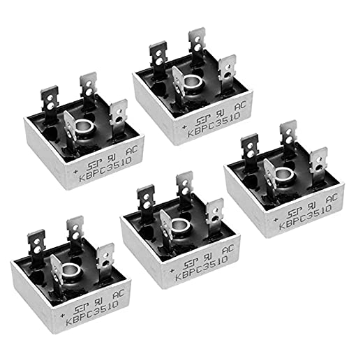 【Il pacchetto include】 Questo set ha raddrizzatori a ponte da 5 pezzi, KBPC3510, 35 A 1000 V monofase, onda intera 35 Amp, diodo elettronico al silicio con fori passanti a 4 pin.