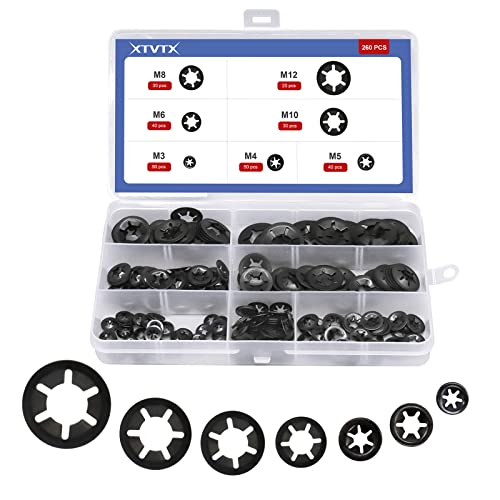 XTVTX 260 PZ Rondelle interne dentate con bloccaggio a stella Rondelle di bloccaggio Speed Clips a pressione Finitura ossido nero 65Mn Kit assortimento per M3 M4 M5 M6 M8 M10 M12