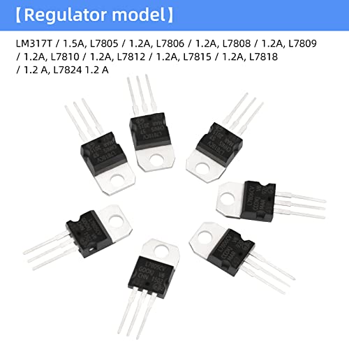 【Modello di regolatore】10 valori, inclusi: LM317T / 1,5 A, L7805 / 1,2 A, L7806 / 1,2 A, L7808 / 1,2 A, L7809 / 1,2 A, L7810 / 1,2 A, L7812 / 1,2 A, L7815 / 1,2 A, L7818 / 1,2 A, L7824 1,2 A.