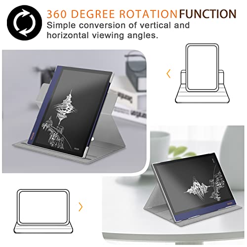 Xuanbeier Custodia Rotante Compatibile con Onyx BOOX Note Air2 /Air/Air 2 Plus 10.3 Pollici Tavoletta Cover con portapenne e Auto Sonno/Sveglia,Grigio