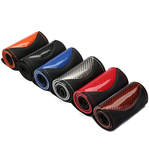 XuanMax Antiscivolo Coprivolante da Cucire in Pelle Microfibra con Ago/Filo Universale Traspirante DIY Copri Volante Auto Cuciture fai da te a Mano Copertura di Volante dell'auto 37-38 cm - Arancione