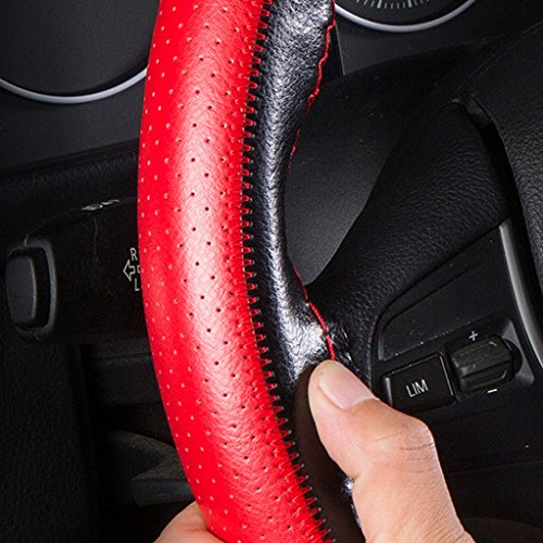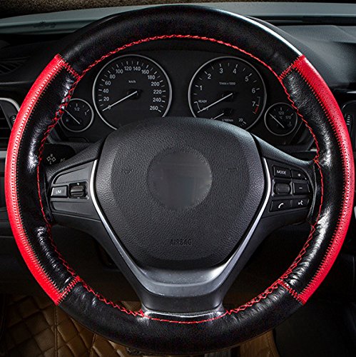 XuanMax Coprivolante da Cucire Universale 38cm in Vera Pelle Traspirante Copri Volante Auto DIY Cuciture fai da te a mano Antiscivolo Copertura di Volante - Beige+Caffè