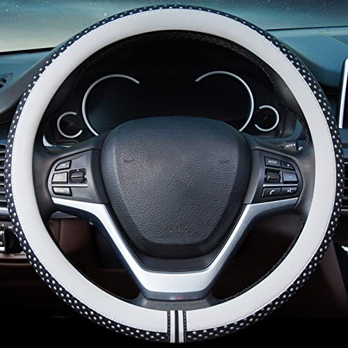 XuanMax Universale Coprivolante Auto PU Pelle Anti Scivolo Copertura del Volante dell'automobile 15 Pollici - Bianca