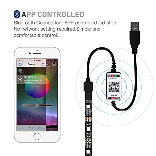 XUANTA Striscia LED RGB 5V alimentata tramite USB, Controllo APP Bluetooth & Sincronizzazione Musicale- 2 m, Non impermeabile