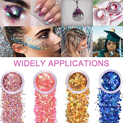 【Ampia gamma di usi】 Lo scintillio del viso può essere applicato per creare un trucco divertente per festival, feste, eventi divertenti accenti rave, recital di danza, allegria o costumi. Aggiungi brillantezza dalla testa ai piedi: viso, corpo, occhi, guance e nail art, anche per arti e mestieri.