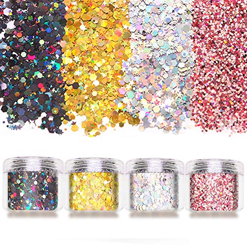 【Sparkling Chunky Glitter】 Festival glitter viene fornito con 12 fantastici colori e dimensioni miste e forme diverse, rendendo le possibilità di bellezza infinite, facendoti attirare l'attenzione in ogni occasione.