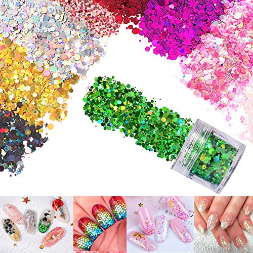XUBX 12 Colori 10ml Set di polvere glitter per unghie, Glitter Cosmetici Lustrini Brillantini Decorazioni, Glitter per Unghie, Chunky Sparkle, Glitter Set per Viso Corpo Capelli Nail Art