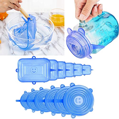 XUBX 12 Pezzi Coperchi in Silicone Stretch, Estensibile Universali Riutilizzabili Coperchio in Silicone per Alimenti, Espandibili Rettangolari & Rotondi Coperchio Copri Contenitori