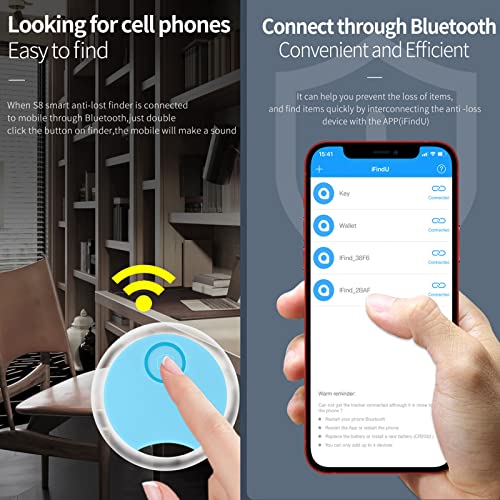 【Funzione anti-smarrimento bidirezionale】: non riesci a trovare il tuo cellulare? Nessun problema! Il Trova oggetti con funzione anti-smarrimento bidirezionale non è controllato solo dal telefono cellulare. Quando non riesci a trovare il telefono, premi il pulsante sul cercatore di chiavi, l'APP del telefono cellulare corrispondente emetterà un segnale acustico.