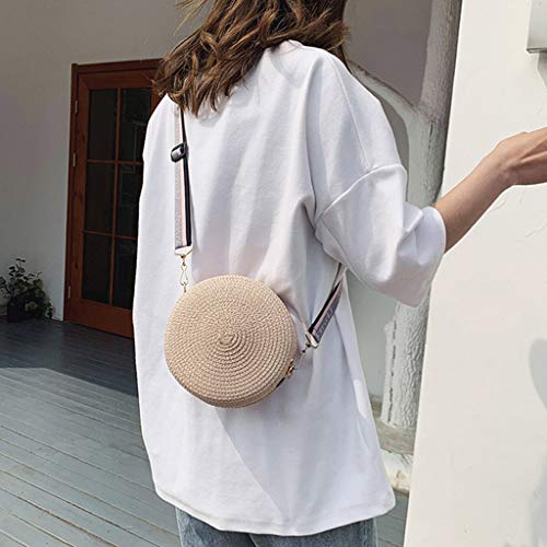 ❀ Design rotondo in tessuto di paglia, semplice e alla moda. Può essere utilizzato come borsa a tracolla, borsa a tracolla.