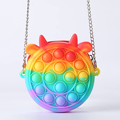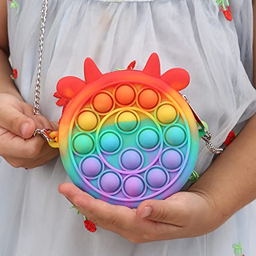 Materiali buoni: questa borsa popit è realizzata in silicone di alta qualità, con cerniera in metallo ad alta resistenza e tracolla. Durevole e non facilmente deformabile, colorato e perfetto per bambini e adulti.