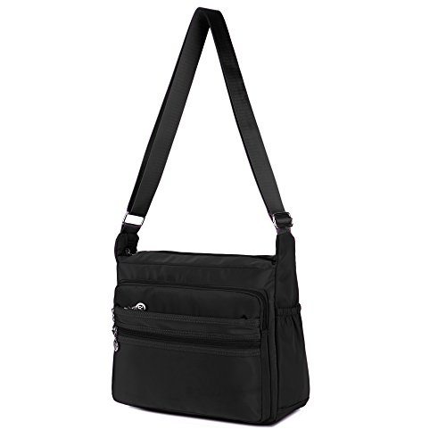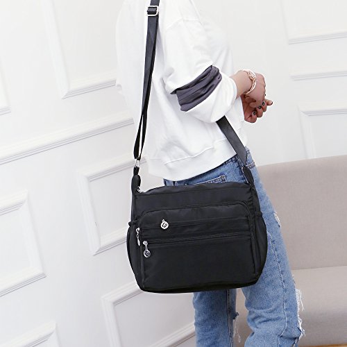 XUEREY Borse a tracolla casual multi-tasca da donna borse in nylon a spalla impermeabile, Nero
