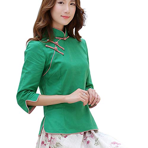 XueXian - Camicetta da donna, stile cinese, stile vintage Verde etichetta XXL:busto 107 cm