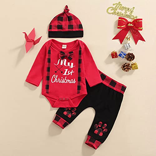 Xulahul 3 Pezzi Neonato di Natale Vestito Neonato Manica Lunga Pullover Felpe Top Elastico in Vita Pagliaccetto Tuta Pantaloni Tuta Pantaloni Tuta Cappello Vestiti di Natale Set (A, 6-9 Mesi)