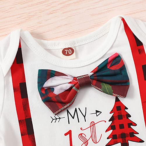 Xulahul 3 Pezzi Neonato di Natale Vestito Neonato Manica Lunga Pullover Felpe Top Pagliaccetto Tuta Santa Pantaloni Tuta Pantaloni Tuta Cappello Vestiti di Natale Set (Bianco Rosso, 12-18 Mesi)