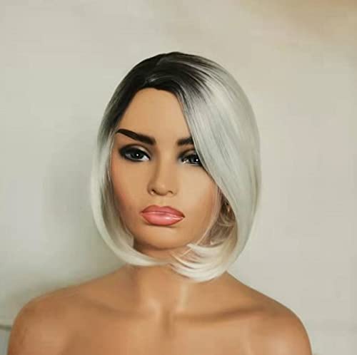XULAIP Parrucche da donna, bianche e nere sfumate, corte, a caschetto, sintetiche, con riga laterale, morbid (bianco e nero sfumato)