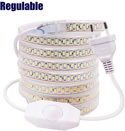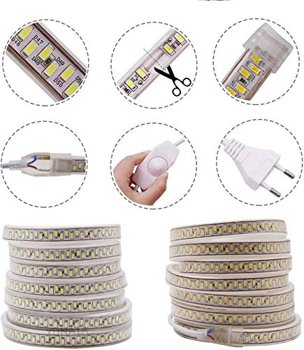 XUNATA 220 V Dimmerabile Strisce LED con Interruttore Dimmer, Bianco Caldo (SMD 5630 180LED / m) Impermeabile e Flessibile Striscia a LED per Scaletta Tetto Cavi da Cucina Decorazione- 7m