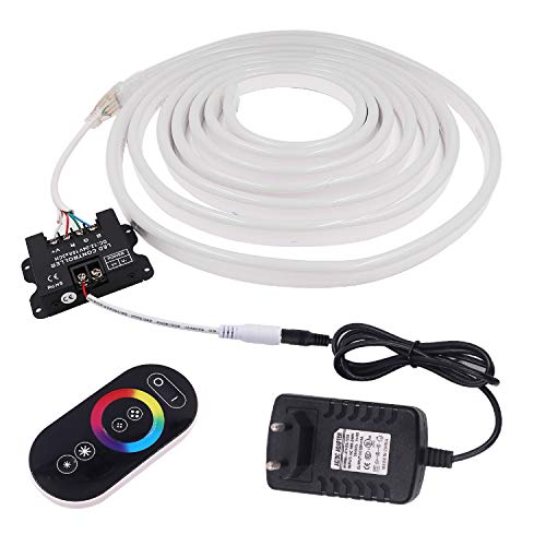 XUNATA Kit luce al Neon DC 12V RGB- 10m Striscia LED Flessibile e Impermeabile con Alimentatore per Controller Remoto RF