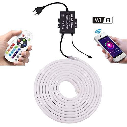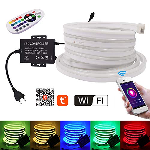 XUNATA Luce al neon WiFi RGB con telecomando, 220 V impermeabile e flessibile striscia LED, sincronizzazione musicale, controllo delle applicazioni (20 m)