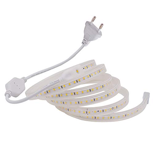 XUNATA Strisce LED 220V, SMD 2835 120LEDs/m, IP67 Impermeabile, Nastri LED Luce Bianca per Scaletta Tetto Cavo Cucina Retroilluminazion (Bianco Naturale, 8m)